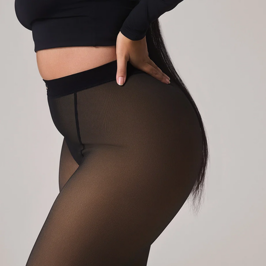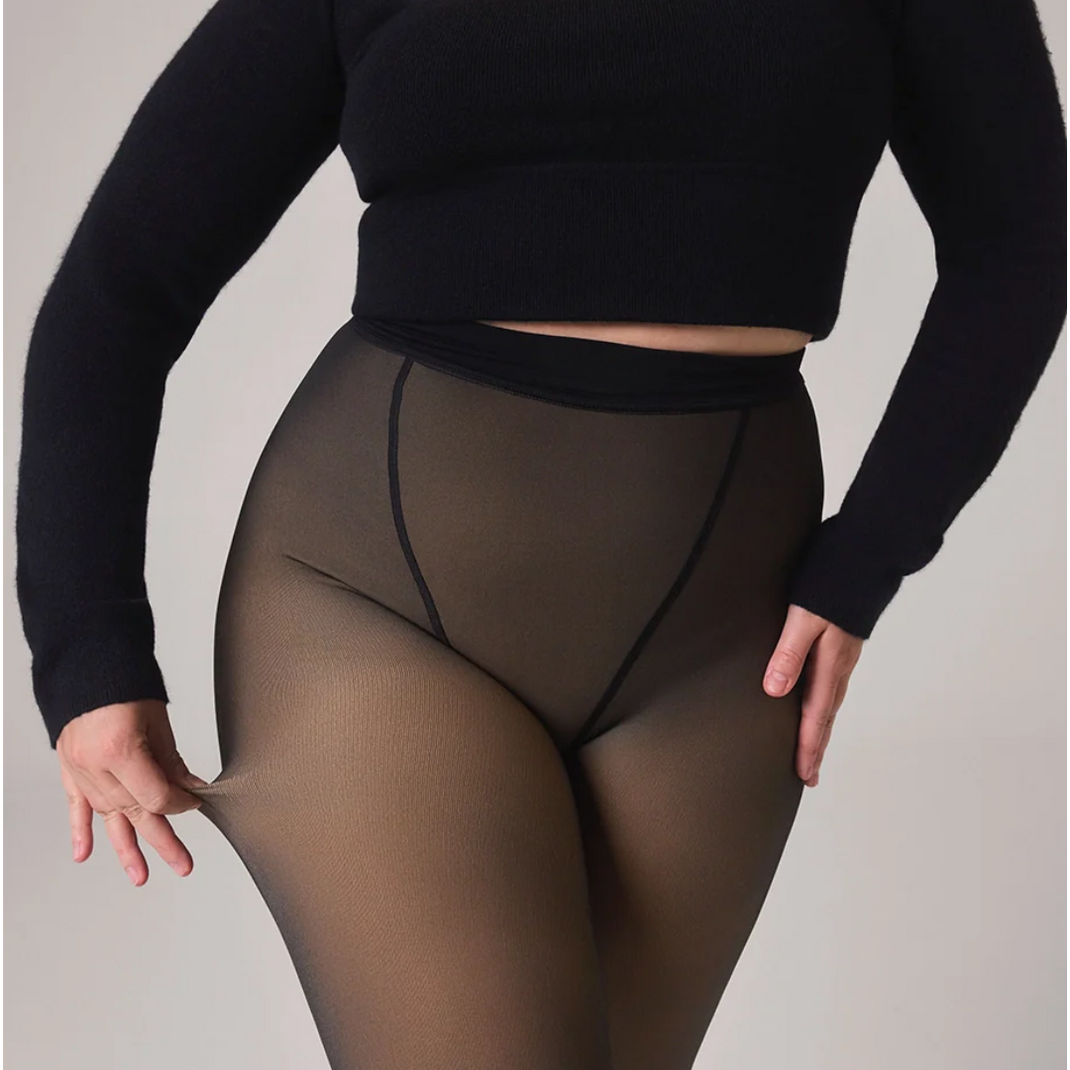 The only tights that master winter style — sheer elegance on the outside, hidden fleece warmth on the inside.